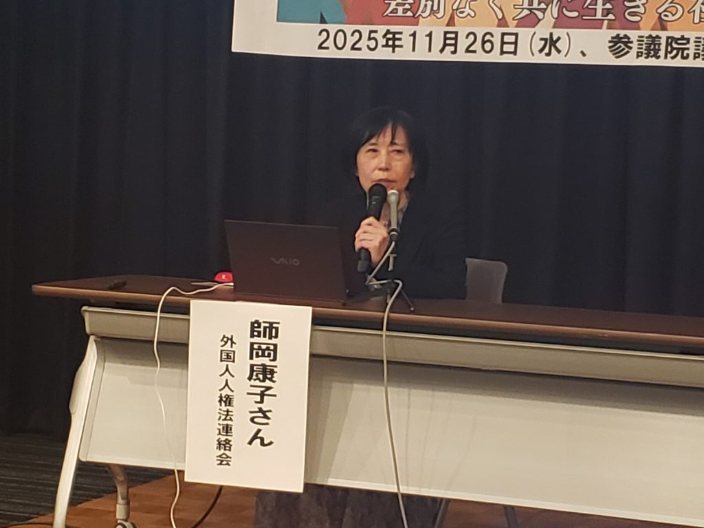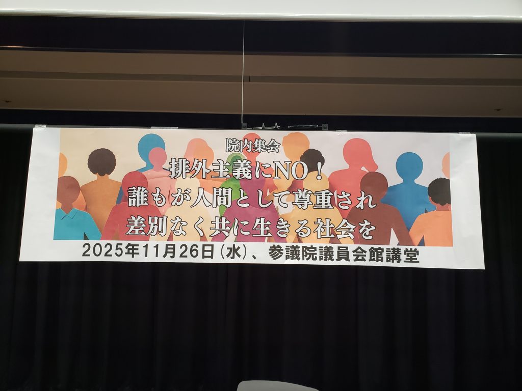 2025年11月26日、外国人人権法連絡会はじめ8団体で院内集会「排外主義にNO! 誰もが人間として尊重され差別なく共に生きる社会を」を開催しました。