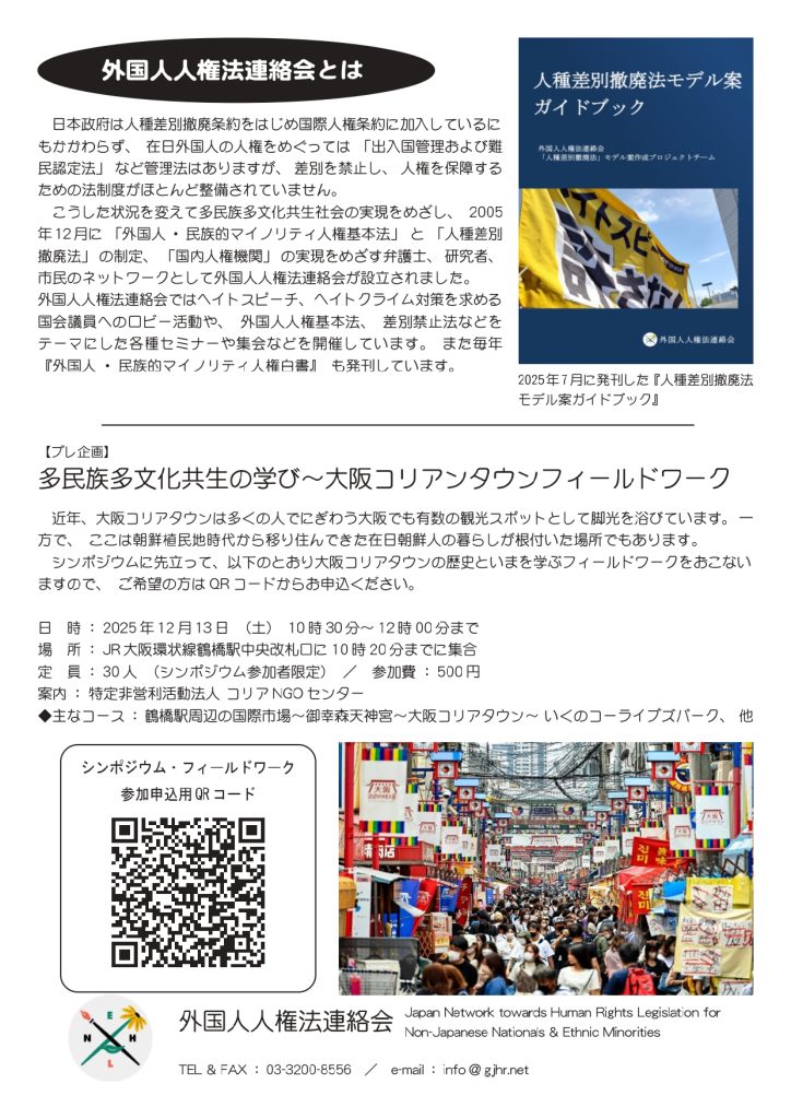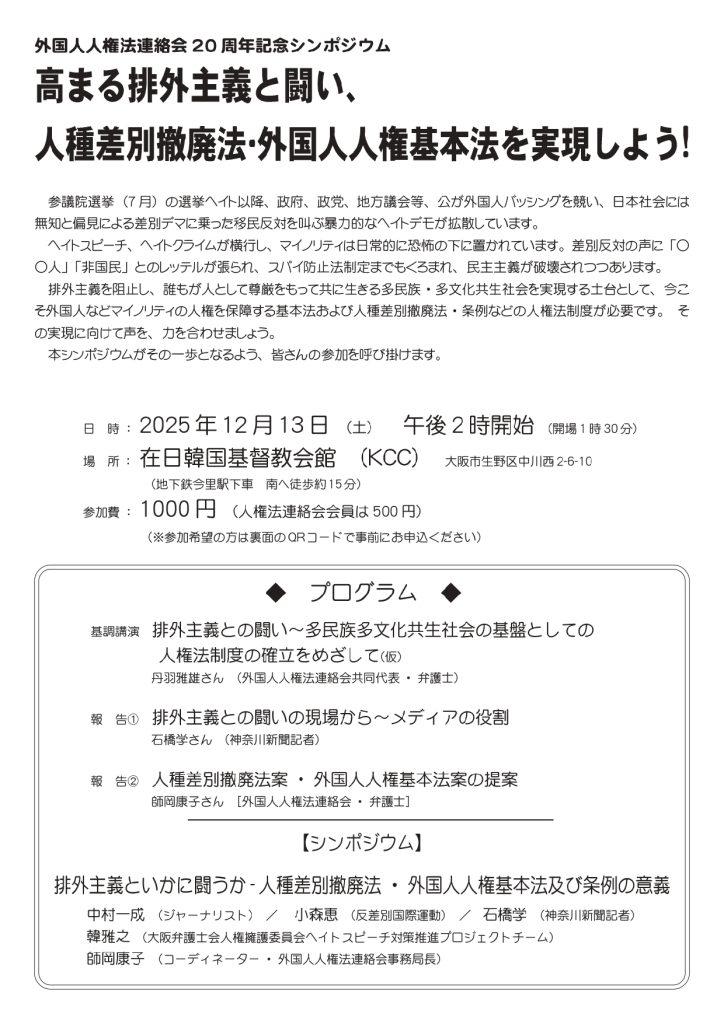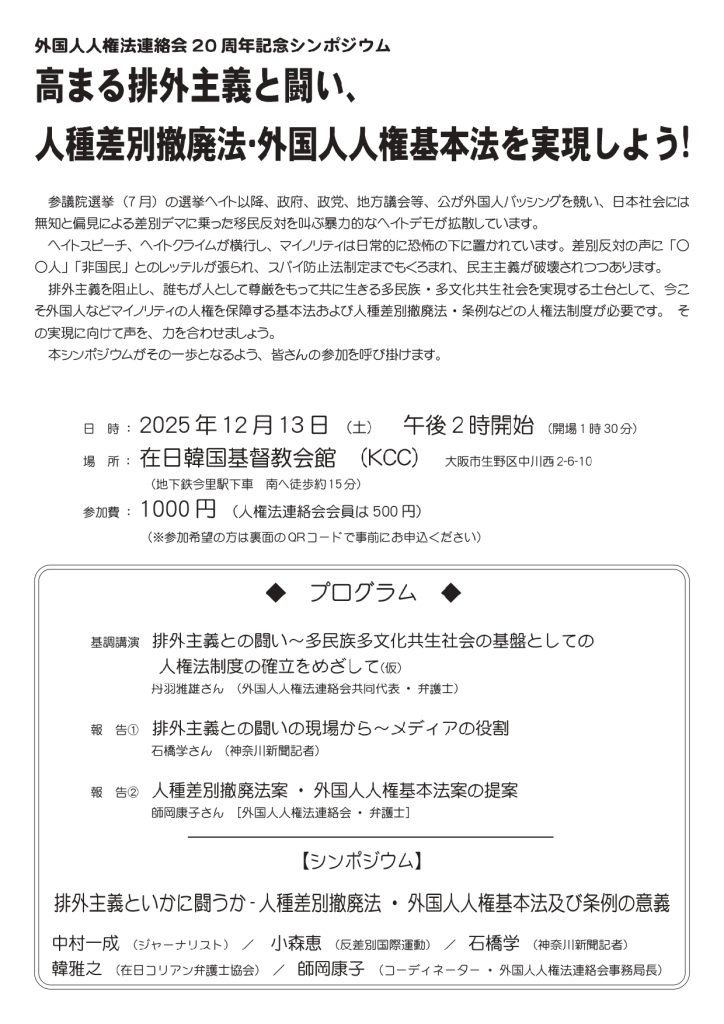🔳シンポジウム「排外主義といかに闘うか。人種差別撤廃法・外国人人権基本法及び条例の意義」